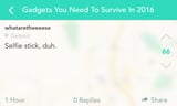 Millennials know modern life is a tiny bit hard sometimes, what with our consistent swiping to the right and being told we're entitled and lazy. Sure, we might become a little too obsessed with sending Snapchats, but it's just a part of our daily life - along with our gadgets. We all know it to be true, which is why people discussed the types of technology they couldn't live without on the popular social sharing app Yik Yak. For some, it's GPS and for others it's a selfie stick. Whether you agree with it or not, you can't deny that maybe you can totally relate. Read ahead and then celebrate just how freakin' millennial you are.